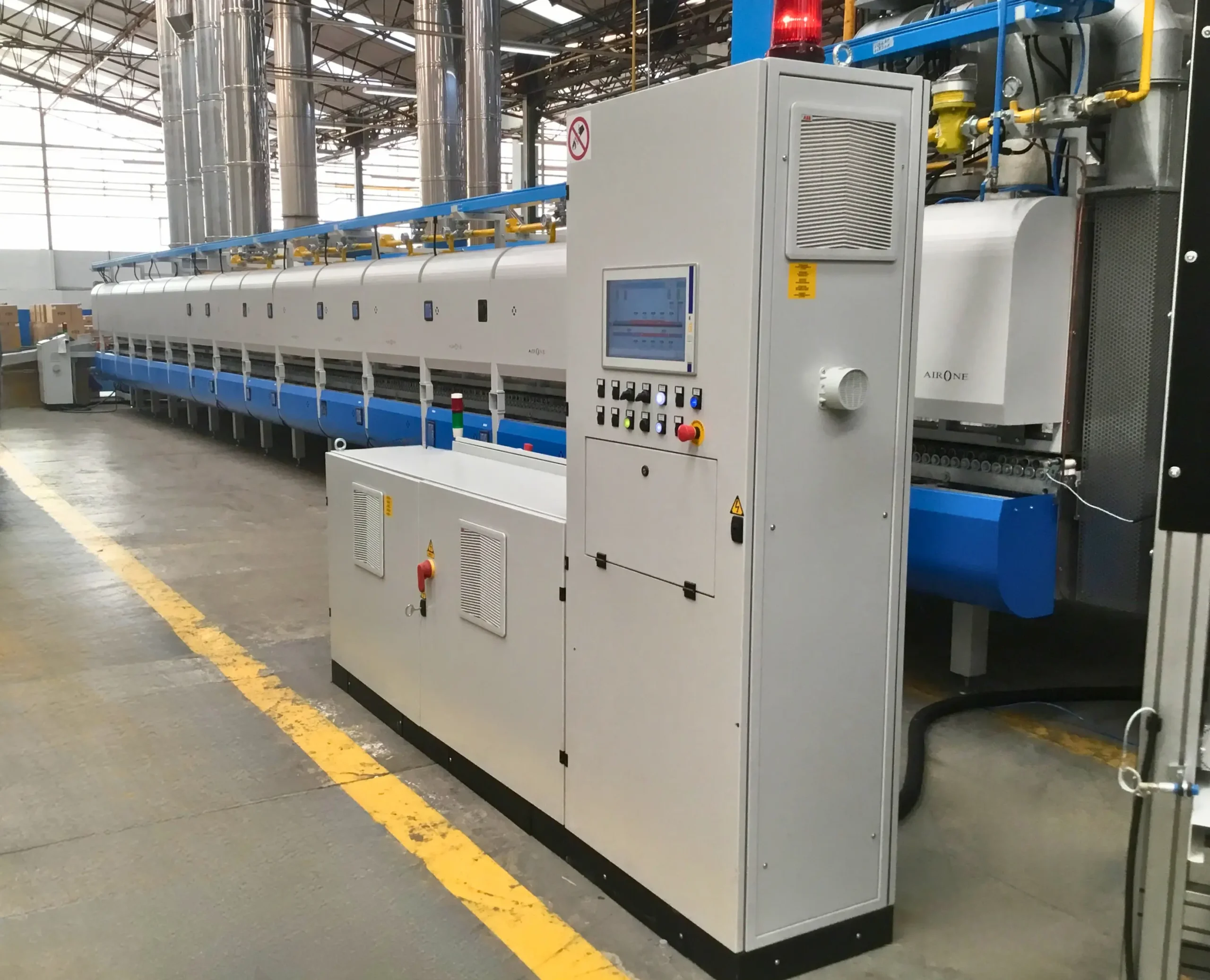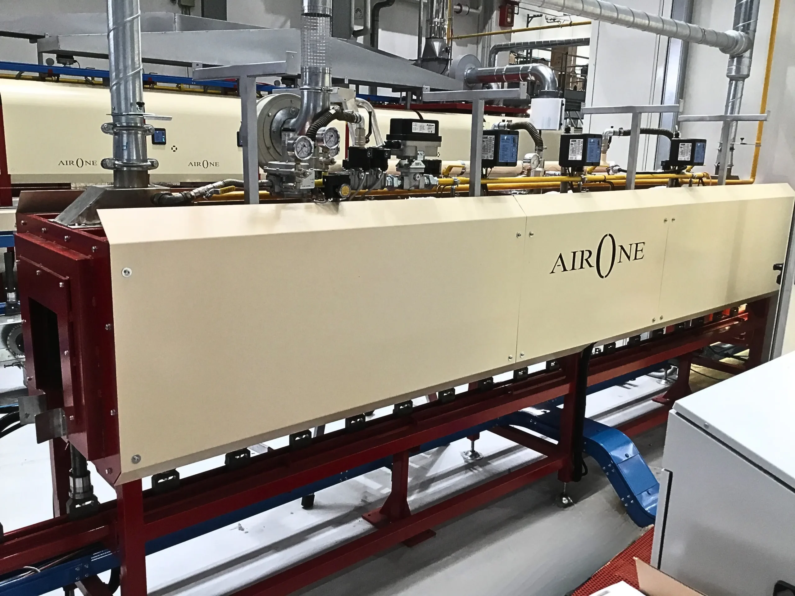 Industrial roller ovens, available with gas or electric power, are designed for the curing and polymerization of non-stick coatings. Equipped with in-house burners and combustion systems and proprietary PC-based software, they allow real-time setting and monitoring of temperatures, cycle times and production and energy consumption data, both on-site and remotely.